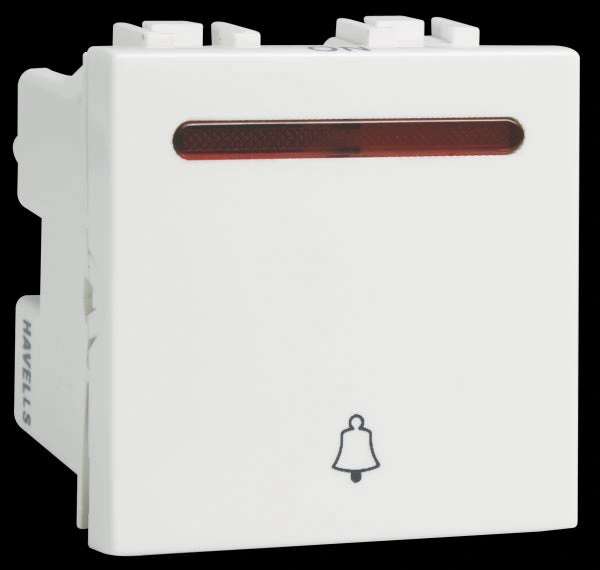 Brand: Havells Colour: White Product Name: Havells Coral Bell Push WI 2M Module: Coral Material: Plastic Applications: Home, Office Series/ Model: SSK-0901 Country of Origin: India Manufacturer Details: Havells India Ltd, QRG Towers, 2D, Sector 126, Noida - 201304, U.P. Customer Care Number: 1800-11-0303 Common/Generic Name: Electrical Switch