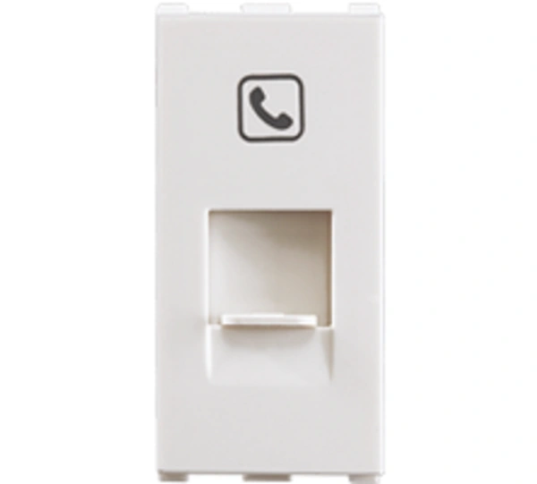 The Panasonic Europa RJ11 Telephone Socket White from the Europa Modular Series by Panasonic Life Solutions India Pvt. Ltd. is a high-quality modular outlet designed for landline and intercom connectivity. It combines precise engineering, superior materials, and a sleek appearance to ensure both performance and aesthetics.